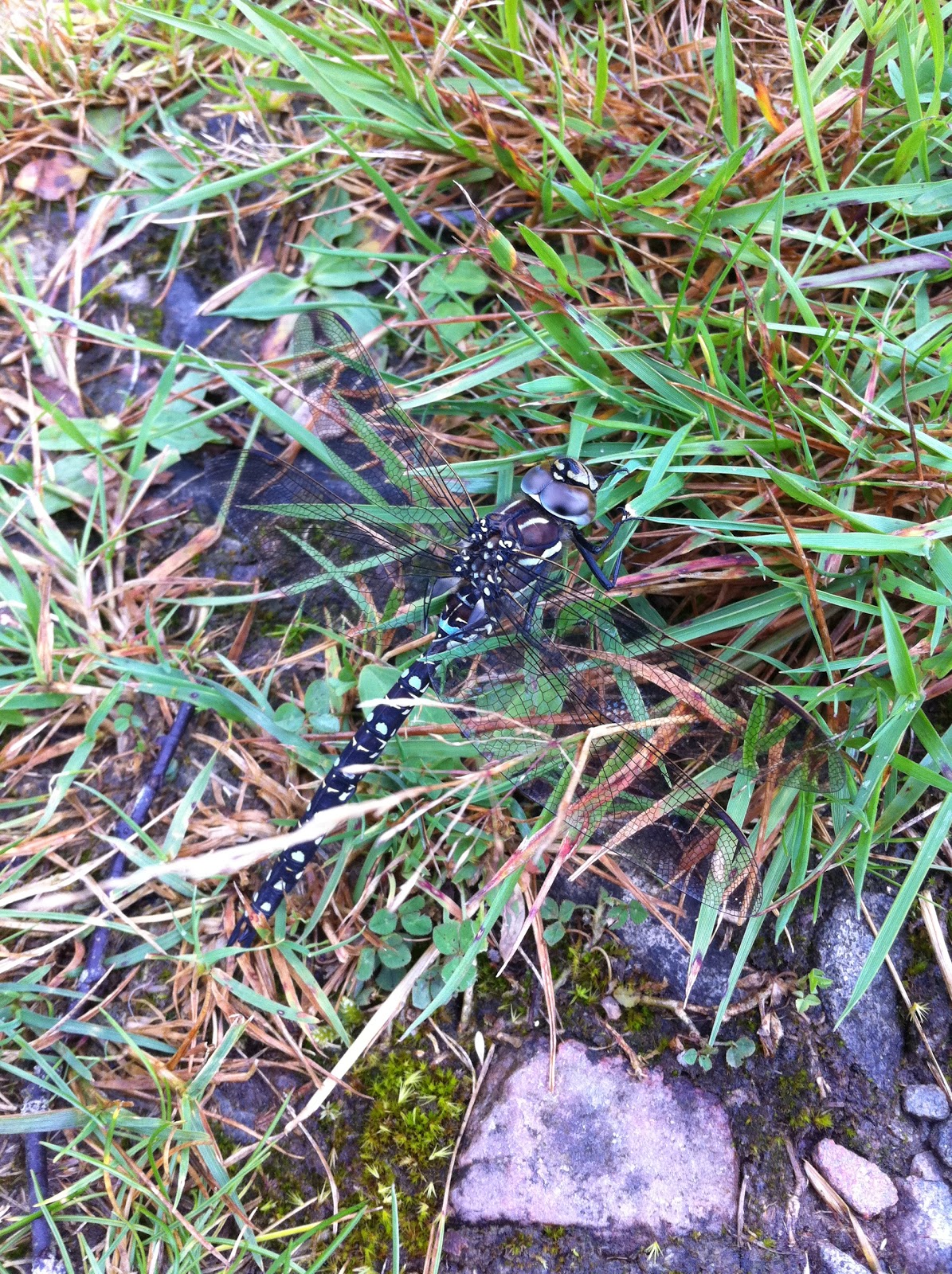 | Common hawker seen near the River Tilt. It's large, black, blue and green and a very strong flier. |